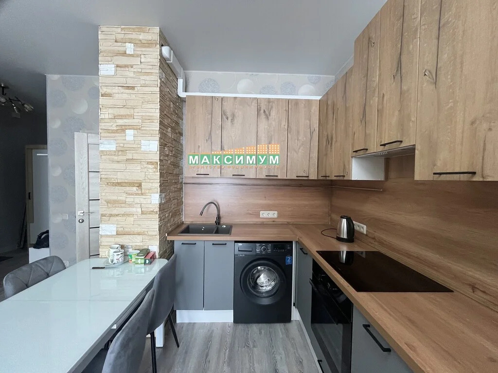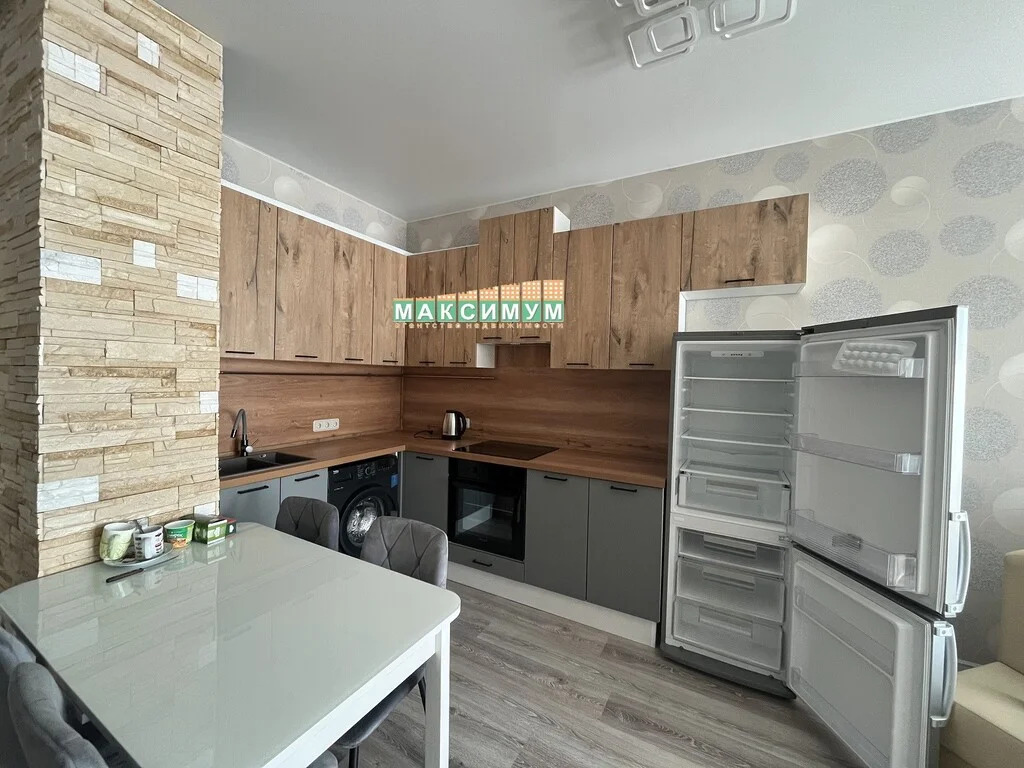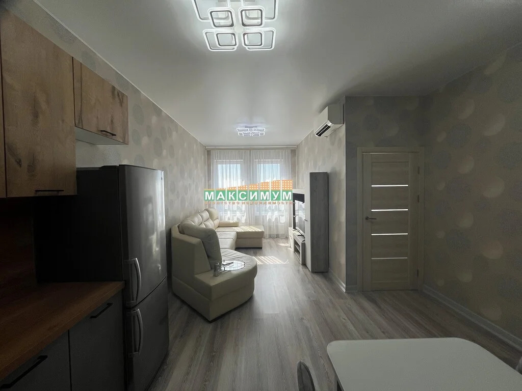 Кухня-гостиная: кухонный гарнитур, стол, 4 стула, новый холодильник, новая варочная панель, новый духовой шкаф, раскладной диван, тумба под телевизор, телевизор, электрический чайник, стиральная машина, кондиционер;
